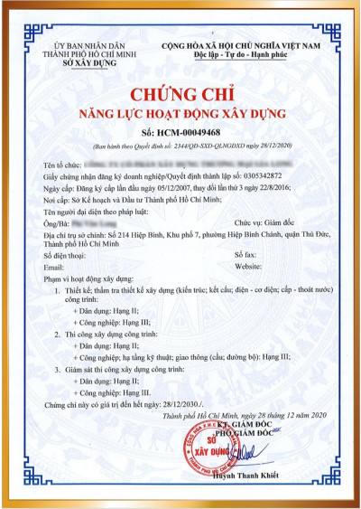 Chứng chỉ năng lực doang nghiệp